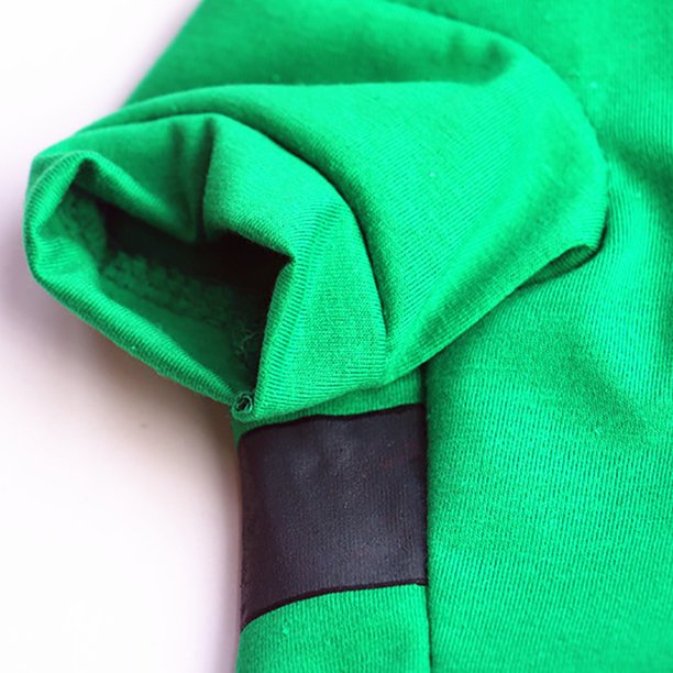 - Vibrant green fabric matching traditional elf workshop uniforms